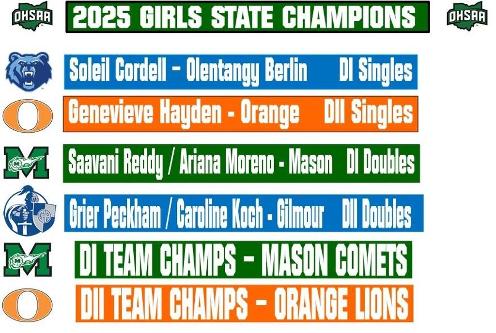 | Emma Liu - Hudson | Emma Wagner/Pratyusha Chaudhuri - Mason | Sophia Thompson - Indian Hill | Dani Forte / Valeria Kislyansky - Hawken |